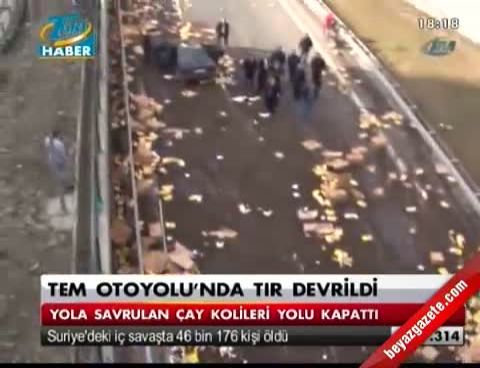 TEM otoyolunda tır devrildi