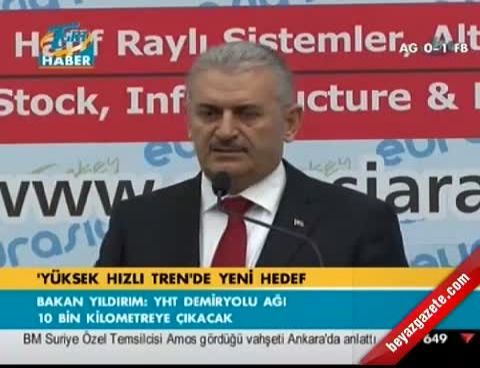 Ulaştırma, Denizcilik ve Haberleşme Bakanı Binali Yıldırım, 2. Avrasya Demiryolu Hafif Raylı Sistemler, Altyapı ve Lojistik Fuarı'nın açılışı yaptı. Buradaki konuşmasında Türkiye'de demiryolu taşımacılığında gelinen noktaya değinen Bakan Yıldırım, '10 yıl önce demiryollarıyla ilgili düşüncelerimizi dostlarımızla paylaşırken, insanlar anlattıklarımızı tebessümle dinler, kibarlık olsun diye de ses çıkarmazlardı. Ama bakışlarından, söylediklerimizin kuru bir hayal olduğunu düşündüklerini anlamak zordeğildi'' dedi.