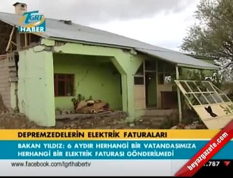 Enerji ve Tabii Kaynaklar Bakanı Taner Yıldız, 'Van'daki depremzedelere elektrik faturası gönderildiği iddialarına' ilişkin, "Çadırların bulunduğu yerlerde yaşayan vatandaşlarımıza, kısaca çadırkent ve konteyner kentte yaşayan hiçbir vatandaşımıza elektrik faturası gönderilmemiştir" dedi.