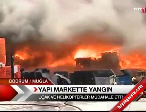 16 Haziran 2012 Cumartesi günü yayınlandı Muğla'nın Bodrum ilçesine bağlı Konacık beldesinde inşaat malzemeleri satışı yapılan bir iş yerinde çıkan yangın hızla büyüyor.