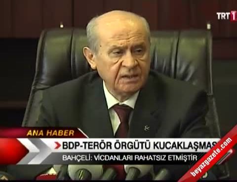 BDP'li milletvekilleri ile PKK'lıların dağ buluşmasının, şehit yakınlarını ve milleti rahatsız ettiğini söyleyen Bahçeli, dokunulmazlıkların kaldırılması için CHP ve AK Parti'nin işbirliği yapmaları halinde MHP'nin de her türlü desteği ve kolaylığı sağlayacağını açıkladı.
