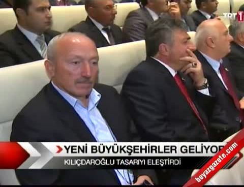 Büyükşehir Belediye Yasa Tasarısı'nın özgürce tartışılmasının istenmediğini vurgulayan Kılıçdaroğlu, "Binin üzerindeki belediyeyi kapatan bir tasarının özgürce tartışılması lazım. İktidar partisinin milletvekillerinin tasarıdan yeteri kadar haberi yok. Ama onlar el kaldırıp, indirmeyi demokrasi bildikleri için, Bakıyorlar, Bakan ne yapıyor. El mi kaldırdı, topluca el kaldırıyorlar. El mi indirdi, topluca el indiriyorlar. Meclis'te yasa görüşülmüyor, adeta 19 Mayıs hareketleri yapılıyor." ifadelerini kullandı. 34 bin 500'in köyün 16 bin 82'sinin bu tasarıyla tarihe karışacağına dikkat çeken Kılıçdaroğlu, "Siz hiçbir gecede kentleşen bir toplum gördünüz mü?" diye sordu. Halkın kandırıldığını dile getiren Kılıçdaroğlu, 13 yeni büyükşehir belediyesi kurulmasını desteklediklerini ifade etti.