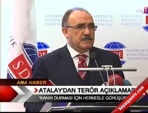 Başbakan Yardımcısı Beşir Atalay, terör ve irtibatlı konularda bütün siyasal partilerle, sivil toplum örgütleriyle ve milletle sonuç alıcı ve kararlı bir şekilde çalışmaya devam ettiklerini belirterek, ''Akan kanı durdurmak, bu yakıcı sorunu sonlandırmak için kiminle görüşülmesi gerekiyorsa, hangi adımın atılması gerekiyorsa, hangi araçların, mekanizmaların devreye sokulması gerekiyorsa uygun zaman ve zeminde gerekli kararları almakta tereddüt göstermiyoruz ve göstermeyeceğiz'' dedi.