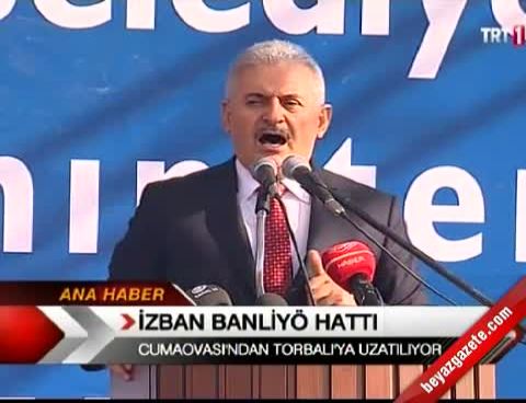Karaman’ın ardından ‘Türkiye seninle gurur duyuyor’, ‘Yolların Kralı Binali Yıldırım’ tezahüratları eşliğinde kürsüye gelen Bakan Binali Yıldırım da, İzmirlilerin 1,5 yıl içinde artık Torbalı’dan daha rahat konforlu sistemle seyahat etme imkanına kavuşacağını belirterek, “İZBAN hattı hakikaten İzmir halkı için İzmirliler için yüzakı bir projedir ve bu proje hükümetle belediyenin birlikte gerçekleştirdiği bir projedir. Biz ne dedik, ‘eğer mesele İzmir’e hizmet ise siyaset teferruattır’ İşte bu anlayışla bu projeyi yaptık. 214 bin sefer yapılmış, 80 milyondan fazla insan bu hatla seyahat etmiş. Bunların duası yeter. Bunların teşekkürü yeter. Başka teşekküre gerek yok” dedi.