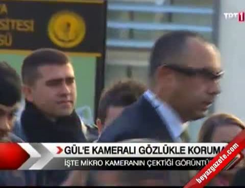 Törende, Cumhurbaşkanı Gül'ün yakın korumalarından birinin gözlüğüne sabitlenmiş mini kamera dikkati çekti.