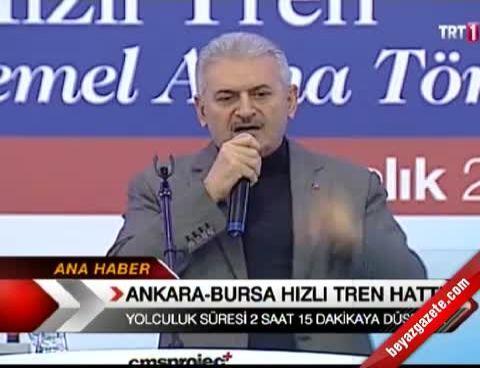 Yıldırım, Bursa-Mudanya tren hattının 1953 yılında çıkarılan bir kanunla kapatıldığını hatırlatarak, ''Bursa'nın etrafına baktığımızda, Bandırma, Bilecik, Eskişehir, Kütahya hepsinde demir yolu var. Osmanlı'ya başkentlik yapmış Bursa'mızın, Türkiye'nin tekstilinin, sanayisinin, turizminin önemli merkezi Bursa'nın demir yolu olmaması büyük bir eksikliktir. Bu eksiklik yarım asırlık bir süreden sonra AK Parti iktidarında, hükümetimiz döneminde nihayet sona eriyor ve Bursa yüksek hızlı trenle buluşuyor'' diye konuştu.