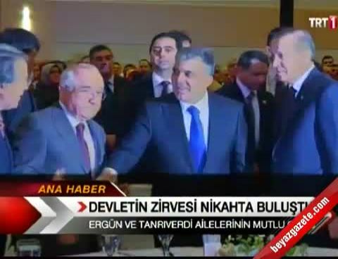 Bilim Sanayi ve Teknoloji Bakanı Nihat Ergün'ün kızı Saliha Ergün ile AK Parti Manisa Milletvekili Hüseyin Tanrıverdi'nin oğlu Furkan Tanrıverdi, yaşamlarını birleştirdi. Çiftin şahitliğini Cumhurbaşkanı Abdullah Gül, TBMM Başkanı Cemil Çiçek, Başbakan Recep Tayyip Erdoğan, Anayasa Mahkemesi Başkanı Haşim Kılıç ve Başbakan Yardımcısı Bülent Arınç yaptı.