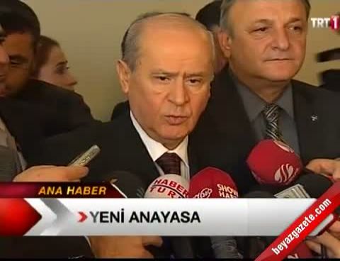 Başbakan Erdoğan, Anayasa Komisyonu'nun başarısız olması durumunda AK Parti'nin kendi anayasa teklifini Meclis'e sunacağını söylemişti. Bahçeli, gazetecilerin Erdoğan'ın bu açıklamasını sorması üzerine şu cevabı verdi: