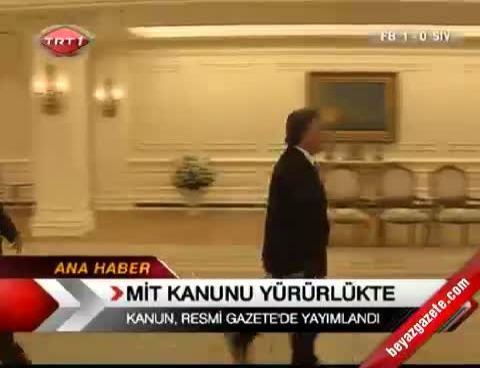 Cumhurbaşkanı Abdullah Gül, Milli İstihbarat Teşkilatı (MİT) mensupları veya bazı kamu görevlileri hakkındaki ceza soruşturmalarında başbakan izni şartını yeniden düzenleyen Devlet İstihbarat Hizmetleri ve Milli İstihbarat Teşkilatı Kanunu'nda Değişiklik Yapılmasına Dair Kanun'u onayladı.