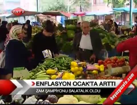 Ocak ayının zam şampiyonu yüzde 34.58'lik artışla salatalık oldu. Onu yüzde 33.33'le piyango bileti, yüzde 25'le sayısal loto, yüzde 23.04'le beyaz lahana izledi. Köprü geçiş ücreti yüzde 13.34, doğalgaz abonman ücreti yüzde 12.38, otoban geçiş ücreti yüzde 11.31 arttı.