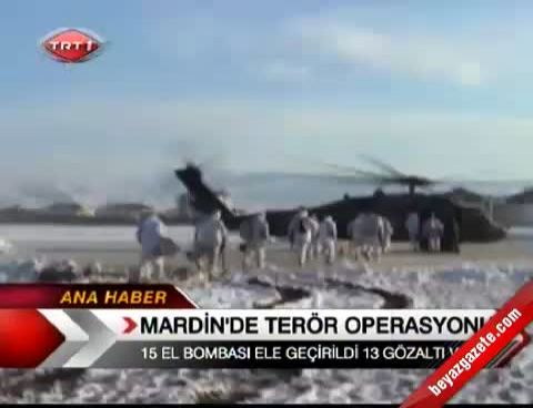 Mardin'de terör örgütü KCK'nın gençlik yapılanmasına yönelik operasyon yapıldı. Mardin Emniyet Müdürlüğü Terör ve İstihbarat Şube Müdürlüğü ekipleri, Kızıltepe ve Nusaybin ilçelerinde PKK- KCK terör örgütünün gençlik yapılanmasına yönelik operasyonda, araç yakma, molotof kokteyli ve el yapımı bomba atma, kundaklama eylemlerine karıştıkları tespit edilen 13 kişiyi gözaltına aldı. Şahısların evlerinde yapılan aramalarda 15 adet el yapımı bomba ve 15 adet kullanıma hazır molotof kokteyli ele geçirildi. Gözaltına alınan zanlılarla ilgili işlemler devam ediyor.