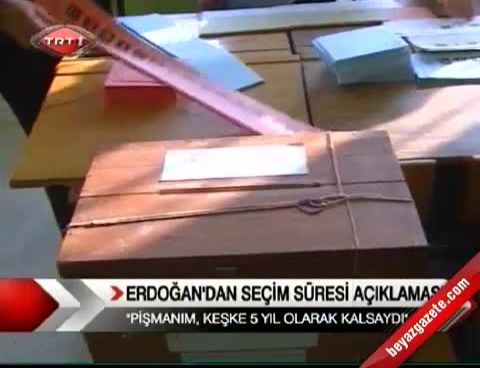 11 Nisan 2012 Çarşamba günü yayınlandı AKP, milletvekili seçiminin '5 yılda bir' yapılmasını istiyor. Erdoğan genel seçimin '4 yılda bir'e çekilmesiyle ilgili "Tek hatamız" demişti.
