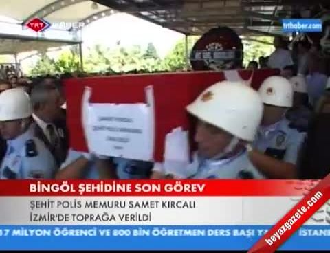 Bingöl'ün Karlıova ilçesinde teröristlerce düzenlenen mayınlı saldırıda şehit olan polis memuru Samet Kırcalı'nın cenazesi, memleketi İzmir'de toprağa verildi.