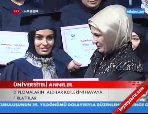 Başbakan Recep Tayyip Erdoğan’ın eşi Emine Erdoğan, Esenler Belediyesi ve Yıldız Teknik Üniversitesi’nin (YTÜ) ortaklaşa hayata geçirdiği 'Anne Üniversitesi’nin ilk mezunlarına diploma verdi.