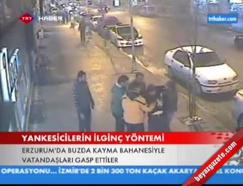 Erzurum Yakutiye ilçesindeki bir alış veriş merkezinin önünde buzda düşme numarası yaparak bir vatandaşın cep telefonunu yankesicilik suretiyle çalma anı güvenlik kamerasına saniye saniye saniye yansıdı. Yankesicilik ve hırsızlıktan sabıkalı oldukları belirlenen M.Y. ve E.D. isimli şahıslar, buzlu zeminde yürürken düşme numarası yaparak gözlerine kestirdikleri bir kişinin cep telefonnu çaldı. Senaryo gereği düşme anında kendilerine yardım eden vatandaşın montunun cebinden el çabukluğu ile cep telefonun çalan yankesiciler daha sonra hiç bir şey olmamış gibi yollarına devam etti. Bir süre sonra cep telefonunun üzerinde olmadığını fark eden M.E.A. dolandırıldıklarını anlayarak polise şikayetçi oldu. Asayiş Şubesi Hırsızlık Büro Amirliği ekipleri, çevredeki iş yerlerinin güvenlik kamerasından yankesicilerin kimliğini tespit ederek, şahısları yakaladı. Haklarında düzenlenen evrakla adli makamlara sevk edilen zanlılar tutuklanarak cezaevine gönderildi. Polis, yankesicilerin ifadesi doğrultusunda çalıp sattıkları telefonu da bulunarak sahibine teslim etti .