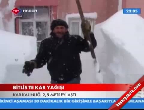 Bitlis Belediyesi'nin arka kısmında bulunan tek katlı müstakil evleri kar adeta yuttu. Son 20 yılın en çetin kışının yaşandığı Bitlis ' te vatandaşlar açtıkları oyuklardan evlerine giriyor. Aşırı kardan çatıların çökmemesi için kendi çabalarıyla çatılarını temizlemeye çalışan vatandaşlar yüksekliği 7 metreyi bulan kar karşısında çaresiz kalıyor. En son 1992 yılında bu kadar çok kar gördüklerini belirten vatandaşlar aşırı kar yağışını doğal afet olarak yorumladı. İnsan boyunu aşan karlar arasında sadece ihtiyaçlarını karşılamak için dışarı çıkan vatandaşlar ev ihtiyaçlarını giderebilmek için karları yarmak zorunda kalıyor. Mahalle aralarında ve evlere girmek için her evin önünde adeta tünelleri aratmayan oyuklar açılmış durumda. Kar konusunda çaresiz kalan Bitlisliler yardım bekliyor.