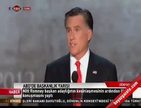 Konuşmasında Obama’ya da çatan Romney, “Artık sayfayı çevirmenin zamanı geldi. Son dört yılın hayal kırıklıklarını arkamızda bırakma zamanı geldi. Bölücülükleri ve atışmaları bir tarafa koyma vakti. Şimdi Amerika’nın umutlarını canlandırma zamanıdır.” dedi.