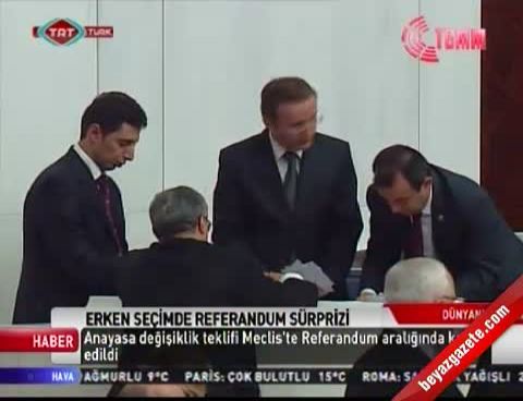 14 Ekim 2012 Pazar günü yayınlandı Erken yerel seçim teklifi, TBMM Genel Kurulu'nda 'referandum eşiği'nde kabul edildi. Cumhurbaşkanı'nın yasa değişikliğini onaylaması durumunda referanduma gidilecek. Bu sürpriz gelişme karşısında AK Parti grubu acil olarak toplandı.