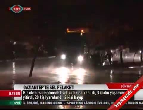 Gaziantep'te akşam saatlerinde başlayan ve gece geç saatlerde şiddetini artıran yağış sebebiyle oluşan sel suları 1 otobüs, 1 kamyon ve 1 otomobili yoldan çıkardı.