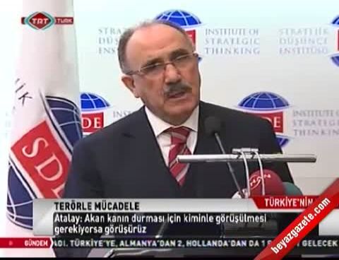Başbakan Yardımcısı Beşir Atalay, terör ve irtibatlı konularda bütün siyasal partilerle, sivil toplum örgütleriyle ve milletle sonuç alıcı ve kararlı bir şekilde çalışmaya devam ettiklerini belirterek, ''Akan kanı durdurmak, bu yakıcı sorunu sonlandırmak için kiminle görüşülmesi gerekiyorsa, hangi adımın atılması gerekiyorsa, hangi araçların, mekanizmaların devreye sokulması gerekiyorsa uygun zaman ve zeminde gerekli kararları almakta tereddüt göstermiyoruz ve göstermeyeceğiz'' dedi.
