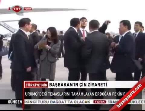 Dün Urumçi'de yenilenebilir enerji şirketlerini ve Büyük Pazar'ı dolaşan Başbakan Erdoğan, bugün THY'ye ait özel uçakla Pekin'e geçti. Türkiye'nin Pekin Büyükelçisi Murat Salim Esenli ve büyükelçilik görevlileri tarafından karşılanan Başbakan Erdoğan, daha sonra Çin Başbakanı Wen Jiabao ile birlikte heyetler arası görüşmelere başkanlık etti.