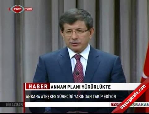 Türkiye olarak öncelikli beklentilerinin Annan barış planının başarıya kavuşması olduğunu belirterek sözlerini şöyle sürdürdü: "Eğer bu plan başarısız olur, bölgesel ve uluslararası güçler de Suriye rejimine herhangi bir karşılık vermezse, tabiiki ulusal güvenliğimizi korumak ve katliamdan ülkemize kaçan insanlara yardım etmek için gerekli olan hazırlığı yapma hakkına sahibiz.""Suriye içindeki sivilleri koruma konusunda Türkiye askeri bir müdahale yapacak mı?" şeklindeki soruya Davutoğlu, bu konunun BM Güvenlik Konseyi'nin vazifesi olduğunun altını çizerek, "1 yıldır devam eden şiddet olaylarında on binlerce kişi hayatını kaybetti, on binlerce kişi hapiste ve birçok kişi ülkesini terk etmek zorunda kaldı. BM Güvenlik Konseyi böyle bir konuda harekete geçmeyecek de ne zaman geçecek!" diyerek konseyi ağır bir dille eleştirdi.