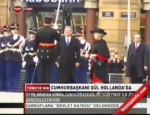 Cumhurbaşkanı Abdullah Gül, Hollanda Kraliçesi Beatrix Wilhelmina Armgard'ın daveti üzerine bugün saat 12.20'de Türk Hava Yolları'na ait 'Kapadokya' adlı özel uçağıyla Hollanda'nın başkenti Amsterdam'a gitti. Cumhurbaşkanı Gül'e, eşi Hayrünnisa Gül, AB Bakanı ve Başmüzakereci Egemen Bağış, Gıda, Tarım ve Hayvancılık Bakanı Mehdi Eker ve yüze yakın iş adamının eşlik ettiği öğrenildi. Cumhurbaşkanı Gül'ü, Hollanda'ya inmeden ilk olarak havada Hollanda'ya ait savaş uçakları karşıladı. Cumhurbaşkanı Abdullah Gül ve beraberindeki heyeti taşıyan uçağa iniş öncesi eşlik eden savaş uçaklarının fotoğraflarını çeken Cumhurbaşkanlığı Koruma Başkanı Osman Cangal, sosyal paylaşım sitesi Twitter'da paylaştı.
