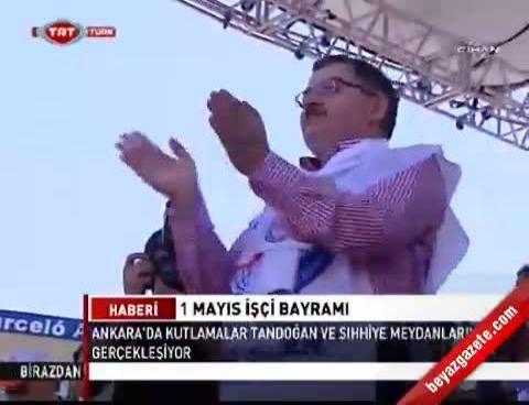 1977 yılında Taksim Meydanı'ndaki olaylı mitingin ardından ilk kez bir bakan, 1 Mayıs kutlamalarına katılıyor. Tandoğan Meydanı'nda Hak-İş ve Memur-Sen üyeleri, mehter marşlarıyla karşılandı. Alanda kemençeler eşliğinde horon tepildi. Renkli görüntülerin yaşandığı miting alanında, Memur-Sen ve Hak-İş, sosyal barış, sosyal adalet, eşiklik ve sendikal haklar ile barajsız, engelsiz toplu iş ilişkileri kanunu, toplu sözleşme masasından haklarını almak ve kamu çalışanlarına toplu sözleşmeyle birlikte grev ve siyaset hakkı almak için güvencesiz, esnek, kuralsız çalışmanın ve taşeronlaşmanın sona erdirilmesi, işsizliğin azaltılması ve düşük ücret politikasına son verilmesi için ve 4/B ile 4-C'liler başta olmak üzere tüm sözleşmelilerin kadroya alınması taleplerini dile getiriyor. 12 Eylül 1980 askeri darbesi ile ve 28 Şubat post modern darbe süreçleri başta olmak üzere tüm antidemokratik girişimlerden hesap sorulması da isteniyor.