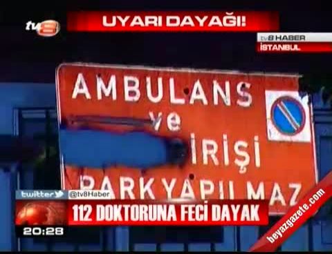 21 Mayıs 2012 Pazartesi günü yayınlandı Kartal’da Acil Yardım İstasyonu'nda görevli 112 doktoru, ambulans önüne park eden kişileri uyardığı için feci şekilde dövüldü.