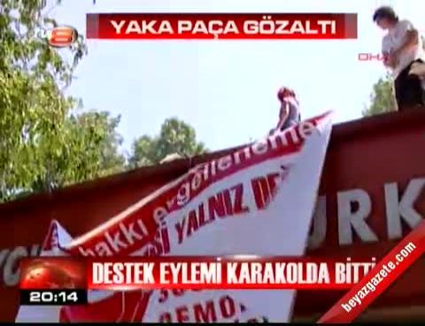 Grev yapani THY çalışanlarına destek vermek için büro girişine ve çatısına pankart asan grubu, çevik kuvvet polisi gaz sıkılarak gözaltına aldı.