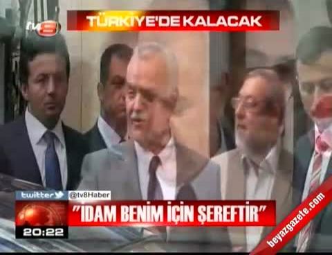 ADİL MAHKEME OLSUN YARIN BAĞDAT’TA YARGILANMAYA HAZIRIM Tek şartının 'adil bir mahkeme' olduğunu vurgulayan ve BM’ye bunun için bir başvuru da yaptığını kaydeden Tarık Haşimi, “BM’nin göndereceği yargıçlar ve Iraklı yargıçlarla birlikte bir ortak mahkeme kurmaları için başvuru yaptım. Böyle bir mahkemenin yapacağı soruşturma ve vereceği karara razıyım. Ama cevap vermediler, yavaş davranıyorlar. Adil mahkeme olsun yarın giderim. BM garanti etsin yarın mahkemede Bağdat’ta yargılanmaya hazırım.” ifadelerini kullandı .