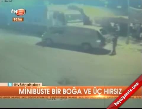 Görüntülerde, 4 kişinin hayvanı bir minibüse bindirmesi de yer alıyor. Olay saat 04.30 sıralarından Yenisahra Mahallesi'nde kurulan kurbanlık hayvan pazarında meydana geldi. Alınan bilgiye göre, Tokat'tan getirilen hayvan 7 bin 100 liraya satıldı. Hayvan sahiplerinin uykuya dalmalarını fırsat bilen 4 kişi bir minibüs ile pazara yanaştı. Şahıslar kurbanlık hayvanın ipini çözerek bir minibüse bindirdi. Sahipleri uyanmadan şahıslar hayvanla birlikte gözden kayboldu. Hırsızlık olayı bir iş yerinin güvenlik kamerasınca saniye saniye göirüntülendi. Kamera kayıtlarına yansıyan görüntülerde olay şöyle gelişiyor: Hayvanların bulunduğu çadıra gelen 2 kişi,hayvanı kısa sürede çözerek hazırlık yapıyor. Daha sonra hazır bekletilen bir minibüsü getiren zanlılar, hayvanı arkasına bindirerek uzaklaşıyor. Bu sırada hayvanların başında bekleyen hayvan sahiplerinden İsa Peker, minibüsü fark ediyor. Zanlıların ayrılmasından sonra soyulduklarını anlayan Peker, büyük bir telaş içinde sağa sola koşturuyor. Hayvan sahiplerinden Ahmet Parlak, hırsızlık olayını polise bildirdiklerini, hayvanı alanların da olaydan haberinin olmadığını söyledi.