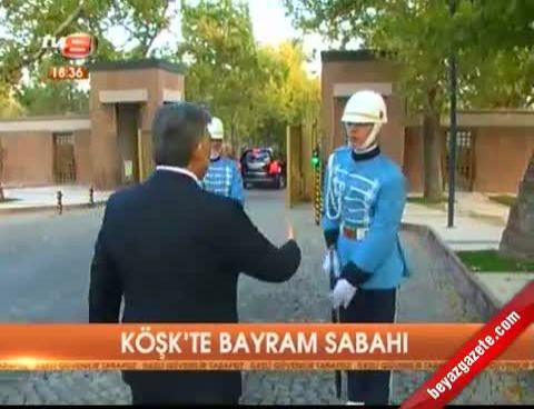 Cumhurbaşkanı Gül, konuta geçerken Çankaya Köşkü'nün 1 nolu kapısında nöbet tutan asker ve polislerle de bayramlaştı.