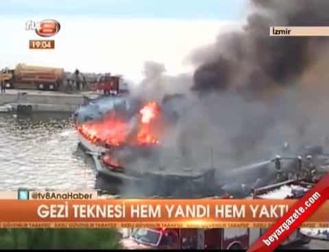 Menderes Kaymakamı Tahsin Kurtbeyoğlu, gazetecilere yaptığı açıklamada, ''Gözbebeği 3'' isimli gezi teknesinde çıkan yangının kısa sürede büyüdüğünü belirtti.