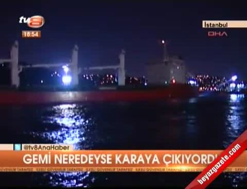 İstanbul Boğazı'ndan geçişi sırasında dümeni arızalanan kuru yük gemisi karaya 50 metre kala demir atarak durabildi.