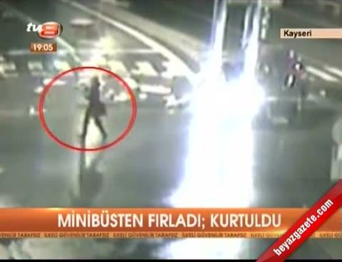 Minibüsten fırladı, kurtuldu