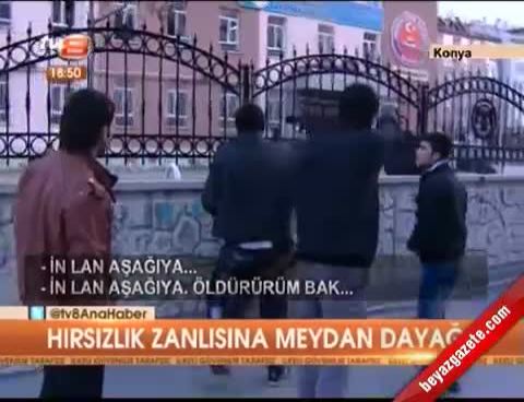 Konya’da park halindeki minibüsten ayakkabı çalmaya çalıştığı iddia edilen hırsızlık şüphelisi, kendisini fark edip peşinden koşan araç sahibi ve vatandaşlar tarafından yaşanan kovalamacanın ardından yakalandı. Bir okulun demir korkuluklarından okulun bahçesine atlamak isterken ayaklarından yakalanan zanlı meydan dayağı yedi.