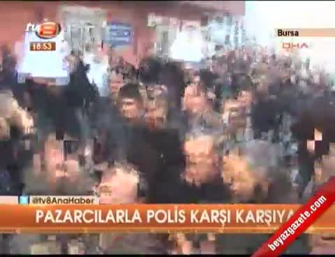 Bursa'da pazar yeri değişimi nedeniyle kendilerinden ekstra ücret talep edildiğini ileri süren bir grup pazarcı, belediye binası önünde eylem yaptı.