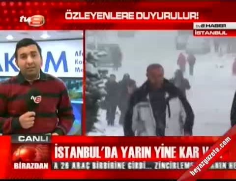 Meteroloji yetkilileri yaptıkları açıklamada, İstanbul 'da kar yağışının sabah erken saatlerde başlayacağını duyurdu. İnternet sitesinden yapılan açıklamada İstanbul için gece saatlerinden itibaren karla karışık yağmur, yarın (Cuma) sabah saatlerinde kar yağışlı olacağı belirtilirken sıcaklığın ise en düşük -1, en yüksek 6 derece olacağı belirtildi. Yetkililer Cumartesi gününden itibaren kar yağışının duracağını ve sıcaklıkların kademeli bir şekilde artacağını ifade etti.