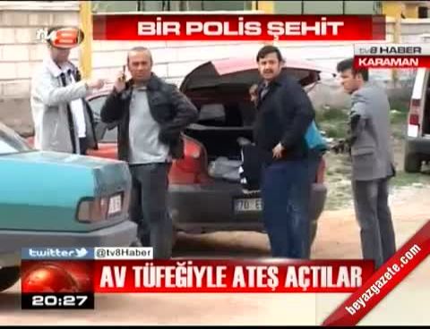 Karaman'da, tüfekle bir işyerine ateş edilmesi olayının zanlılarına yönelik Karaman Adliyesi önünde yapılan saldırıda bir polis şehit oldu, 2 zanlı da yaralandı.