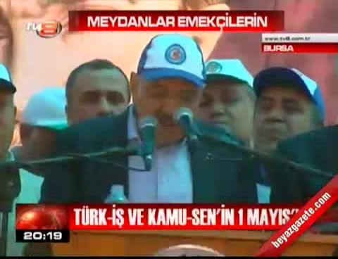 Bursa'da Kamu Emekçileri Sendikaları Konfederasyonu (KESK) ve Türkiye Mimar Mühendisler Odaları Birliği (TMMOB), 1 Mayıs İşçi Bayramı nedeniyle Kent Meydanı'nda miting düzenlendi.