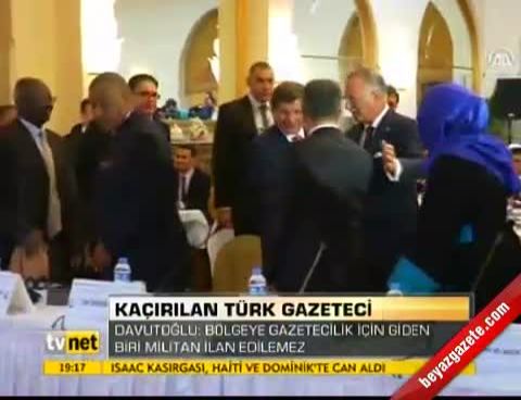 Ankara'da gerçekleştirilen İslam İşbirliği Teşkilatı (İİT) Bağımsız Daimi İnsan Hakları Komisyonu ikinci toplantısı sonrasında İİT Genel Sekreteri Ekmeleddin İhsanoğlu ile bir basın toplantısı düzenleyen Davutoğlu, bir soru üzerine Suriye’de kaçırılan Türk gazeteci hakkında da açıklama yaptı. Türk kameramanla iletişimin koptuğu andan itibaren yakından ilgilendiklerini belirten Davutoğlu, ailesiyle de konuştuğunu kaydetti.