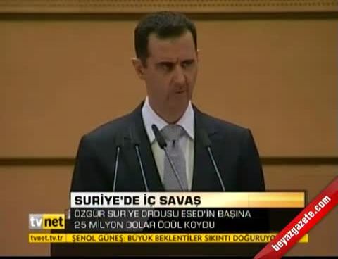 Özgür Suriye Ordusu, Suriye Devlet Başkanı Beşar Esed'i ''ölü ya da diri'' teslim edene 25 milyon dolar ödül verileceğini bildirdi.
