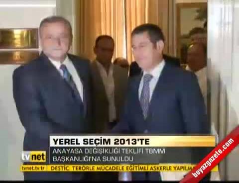 AK Parti ve MHP'nin hazırladığı, yerel seçimlerin 27 Ekim 2013'te yapılmasına ilişkin Anayasa değişiklik teklifi, Meclis Başkanlığı'na sunuldu.
