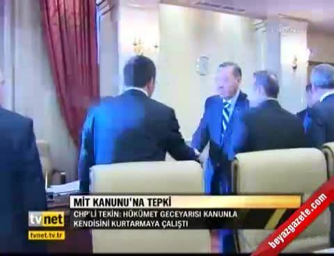 CHP Genel Başkan Yardımcısı Gürsel Tekin, katıldığı bir program öncesinde gazetecilerin gündeme ilişkin sorularını cevaplandırdı. Bir soru üzerine Cumhurbaşkanı Abdullah Gül tarafından onaylanan MİT Kanunu'nu değerlendiren Gürsel Tekin, seçimden sonra Başbakan ve Bakanların açıklamaları olduğu ve bu açıklamalarında 'hiç kimse korkmasın, herkesin güvencesi biz olacağız' şeklinde ifadeler kullandıklarını hatırlatttı. 'Kendinizi koruyamadınız, bizi nasıl koruyacaksınız? ' diye soran Gürsel Tekin, 'Bir haftaboyunca adeta ringte dayak yemiş boksörler gibi evden çıkamadınız ' diye konuştu. Hükümetin gece yarısı bir kanunla kendini kurtarmaya çalıştığını fakat kurtaramayacağını belirten Gürsel Tekin, 'Dünyada iktidar güvencesi, demokrasilerde iktidar güvencesi diye birşey olur mu? ' diyerek, 'Allah uzun ömür versin. Başbakan yarın ölse ne olacak? Bir Neron gelse başımıza ne olacak? ' diyerek tepki gösterdi.