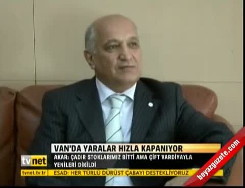 Kızalay Başkanı Ahmet Lütfi Akar, ziyarette, gazetecilerin Van depremiyle ilgili sorularını da cevapladı. Van 'da sosyal, kültürel çalışmaların devam ettiğini anlatan Akar, şunları söyledi: “Van 'da çadır kentlerimiz kaldırıldı. Van ve Erçiş 'e 28 bin konteynır ev temin ettik.150 bine yakın vatandaşımız konteynırlarda yaşamaya başladı. Artık sıcak yemek yapmayı bıraktık, konteynırdaki vatandaşlarımıza kuru erzaklarla yemeklerini kendilerinin yapmalarını sağladık. Çeşitli şirketlerle ve sivil toplum örgütleriyle işbirliği yapmak suretiyle yeni dönem çalışmalarına biz de katılıyoruz. AÇEV ve Vodafone işbirliğinde okul öncesi öğrenimle çalışma başlatıyoruz. Kültür ve Turizm Bakanlığımızla kültürel etkinlikler ve psiko-sosyal destek programlarımız devam ediyor. Ayrıca orada bulunan 80 bin çadırın toplayıp yeniden kullanılabilir hale getirmeye çalışıyoruz. Deprem dolaysıyla bir çadır bırakmadan hepsini oraya nakletmiştik. Şu güne kadar çadırların yenileyerek 28 metrekarelik 10 bin çadır kent çadırı ürettik.”