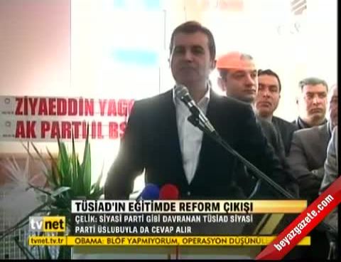 Partisinin Yumurtalık ilçe kongresine katılan ve burada bir konuşma yapan AK Parti Genel Başkan Yardımcısı Ömer Çelik, hükümet eğitim reformunu eleştiren TÜSİAD'a yüklendi. TÜSİAD'ın bu düzenlemeye karşı koymasına bir anlam veremediklerini dile getiren Çelik, 'Bu düzenleme ile Batıda olduğu gibi çocuklarımızın istediği yaşta istediği eğitimi alması ve eğitim ortamına katılabilmesi söz konusu. Biz eğitim sistemindeki yanlışlıkların düzeltilmesi için yeni bir çalışma yapıyoruz. Tabii ki son tartışmalarıizlediniz. Muhalefet partilerinin bu konuda söyleyecek hiçbir şeyleri yok. Onlardan cevap bile verebileceğimiz bir söz duymuyoruz. Bunların yaptıkları sadece hakaret ve iftiradır. Muhalefetten bir karşılık, tez ve argüman gelmediği için de bunlarla herhangi bir konuyu tartışmak mümkün olmuyor. Fakat enteresan bir durumdur. Son günlerde Türkiye'deki muhalefet boşluğunu, iktidar partisine muhalefet yapma boşluğunu TÜSİAD adlı kurum üstlenmeye başladı ' dedi