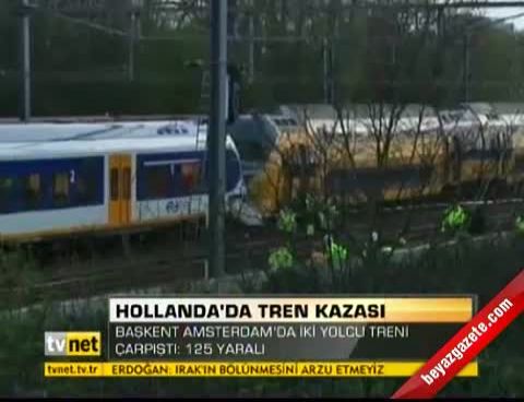 Amsterdam’da Sloterdijk istasyonundan Den Helder'den Nijmegen istikametine giden hızlı tren ile Amsterdam banliyö treni dün akşam 18.36'da çarpıştı. Çarpışma anında iki trende 136 kişi yaralandı. Yaralılardan 80 kişi ayakta tedavi görürken, 56 kişi de ambulanslarla hastanelere sevk edildi. Bunların içinde 13 yaralının hayati tehlikesi bulunuyor. Her iki trenden yaralılar itfaiyenin katkılarıyla kısa zamanda vagonlardan çıkartıldı. Kaza yerine ulaşım zorluğu yaşanırken, yaralıların tahliyesi sırasında itfaiye merdivenlerinde yararlanıldı.