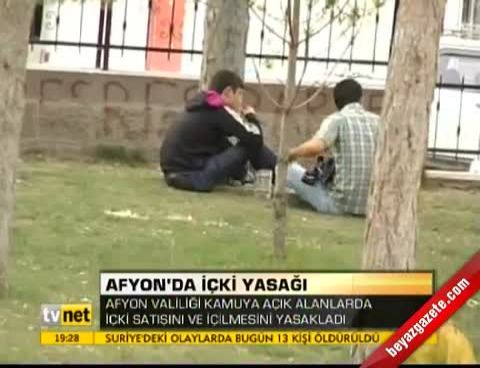 28 Nisan 2012 Cumartesi günü yayınlandı Afyonkarahisar’da kamuya açık alanlarda içki satışı ve tüketimi yasaklandı. Yasağa uymayanlar 82 lira ceza ödeyecek.