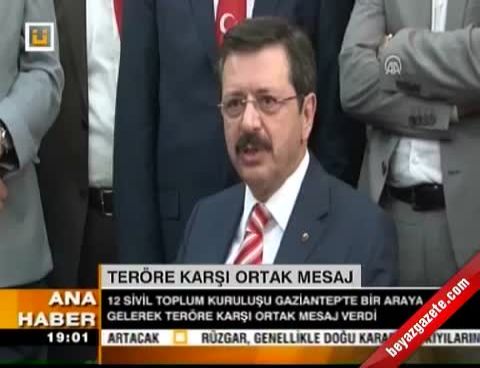 Terörün ülkenin ortak sorunu olduğunu kaydeden Hisarcıklıoğlu, sözlerine şöyle devam etti: "Bu konu üzerinden hiçbir çıkar hesabı yapılamaz. O nedenle, başta siyaset kurumu olmak üzere, ülkemizin tüm kurum ve kuruluşları hassasiyetle hareket etmek zorundadır. Bu süreçte, toplumun kanaat önderlerine düşen sorumluluklar da var. Her kanaat önderi, kendi tabanını teröre ve ayrışmaya karşı bir arada tutmalıdır. Bizim en büyük zenginliğimiz ve ortak paydamız, birlik-beraberliğimiz ve kardeşliğimizdir. Toplumun bütün kesimlerini temsil eden meslek örgütleri, sendika konfederasyonları ve sivil toplum kuruluşları olarak, biz bu anlayışla hareket ediyor ve bu mesajı tüm tabanımıza ve vatandaşlarımıza duyuruyoruz. Bu vesileyle sizlerin huzurunda, başta Sayın Cumhurbaşkanımıza ve siyasi partilerimizin liderlerine teşekkür ediyoruz. Liderlerin, Gaziantep’teki birlik ve beraberlik görüntüsü, bu zor günlerde insanımızın en büyük umudu oldu. İşte Türkiye’nin dostlarını sevindiren, düşmanlarını üzen tablo, bu birlik tablosudur. Bu milletin her şeyin üstesinden gelecek gücü var. Tek ihtiyacımız bu tabloyu görmek. Şimdi bu resmi tüm ülke meselelerinde hakim kılmak zorundayız. Bu birlik ruhunu bundan sonra da yaşatmak zorundayız. İşte o zaman, bu ülkenin önünde hiçbir güç duramayacak. Tüm siyasilerimizden talebimiz, bu birlik ve beraberlik ruhunu yaşatmaları, ülke sorunlarına da bu anlayışla yaklaşmalarıdır. Bu süreçte milletimizin bütünlüğünü ve demokrasimizi sağlamlaştıracak yeni bir anayasa, bu hain planları bozacak en önemli unsur olacaktır. Çünkü gün birlikte düşünme, birlikte çalışma, birlikte hareket etme günüdür. Gün, kardeşliğimize sahip çıkma günüdür. "